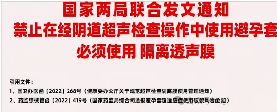 为规范相关检查治疗操作和医疗器械临床使用行为,防控操作损伤和感染风险,保障医疗安全,2022年国家卫生健康委员会办公室发布【国卫办医函{2022}268号】关于规范超声检查隔离膜使用管理的通知,明确严禁用避孕套替代隔离膜!下一步会逐步加大监管力度和推广应用!