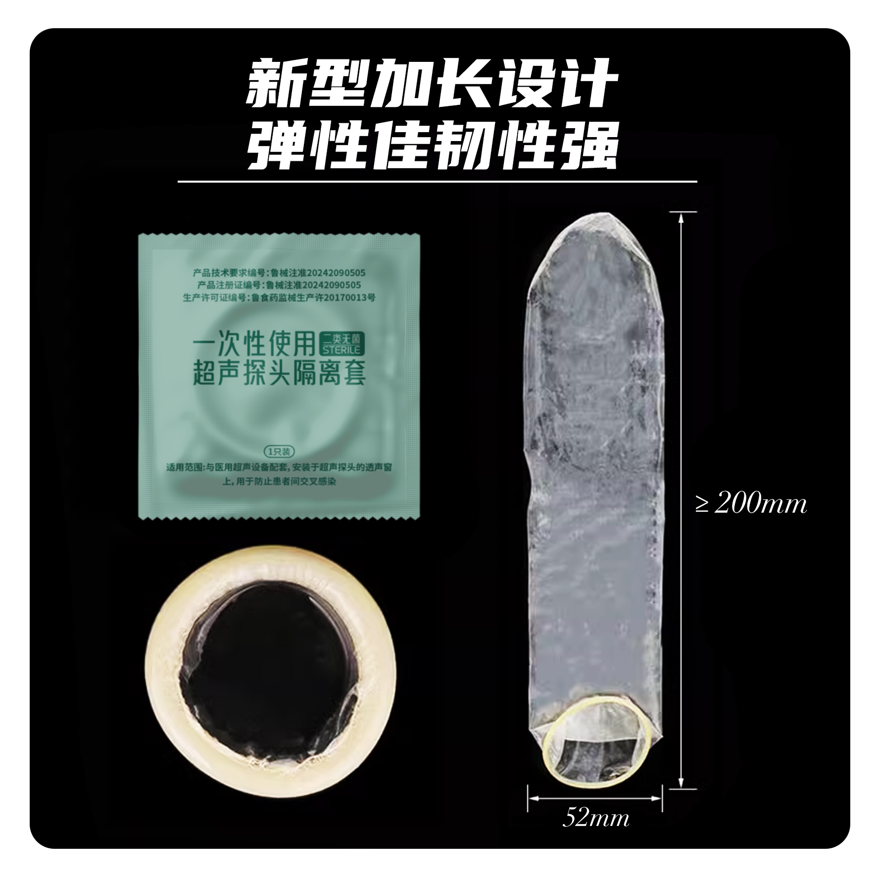 普通探头保护套过厚,容易导致探测图像不清晰,检测结果有误。广东会隔离透声膜采用进口乳胶,隐形透明,透声性能好。就像给探头戴了层隐形雨衣,既防交叉感染,又能保证音波畅通。经临床验证,图像质量与直接接触检查无异,连0.2mm的微钙化灶都逃不过它的法眼。厚度仅相当于头发丝的1/3,贴合时几乎感受不到存在,告别传统套膜带来的"隔阂感"。
