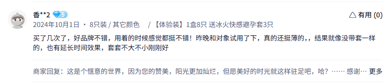 相较于“魔法类”(添加苯佐卡因)的延时产品而言,物理延时的套套不会产生依赖性。亲肤降敏,局部加厚,强力辅助每一个战栗时刻。时久激情、时久爱、时久薄,不止于久,薄润贴合,换来两个人更持久的快乐。